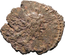 IVDAEA CAPTA, S C (in exergue), Judaea, veiled, draped, seated right under palm-tree, in attitude of mourning; left to palm-tree captive standing right with hands tied behind his back; various arms around