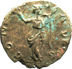 Judaea, veiled, draped, seated right under palm-tree, in attitude of mourning; behind palm, Vespasian, in military dress, standing right, right foot on helmet, holding vertical spear in right hand and parazonium in left