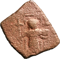 AFZWT GDH / YZKRT, Bust of Yazdigerd III facing right, Pahlavi inscription to left downwards, Pahlavi inscription to right downwards (ruler), earring: three pellet triangle, breast ornamentation: three pellet triangle, enclosed by double beaded circle, margin divided into four quadrants by star-and-crescent, Arabic inscription in second quadrant, countermark in first quadrant