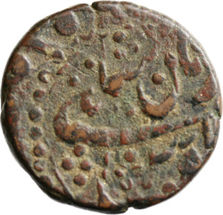 ضرب اشرف البلاد احمدشاهى ٧, Arabic and Persian inscription in field, enclosed by plain and pointillate circles