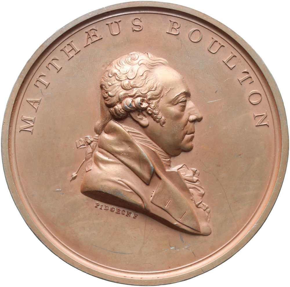 "This piece reads MATTHÆUS BOULTON, whereas the finished medal reads MATTHAEVS BOVLTON"; cf. Pollard pp. 316-8; cf. BHM 976; cf. E 1114