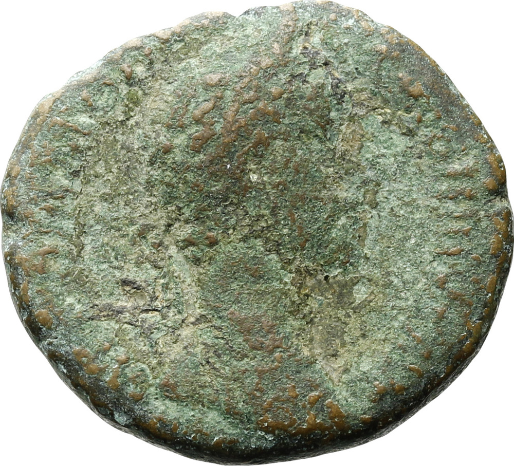 Jupiter standing front, head left, holding thunderbolt in right hand and cloak over Commodus, who stands on left holding branch and sceptre : Jupiter holds sceptre in left hand.