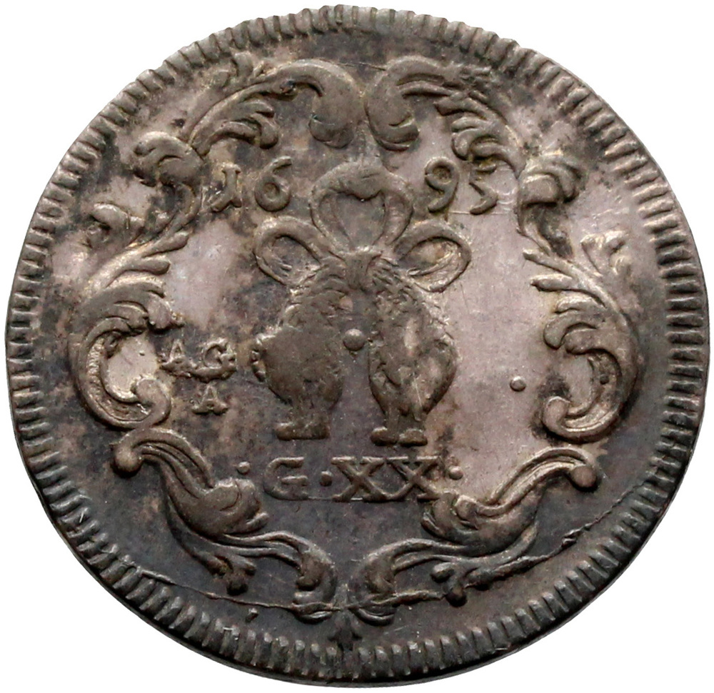Mint-master: Andrea Giovine, 1682-1700: initials AG Assayer: Marco Antonio Ariani, 1675-1700: initial A