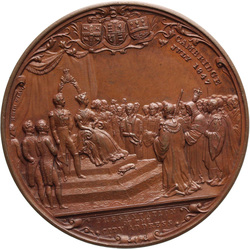 EDWARDVS VI D G ANG FR E HIB REX FIDEI DEFNS E IN TERRIS ANG E HIB ECCLE CAPVT SVPREMUM CORONATVS EST MD XLVI XX FEBRVA ETATIS DECIMO, Half length figure of Edward VI right