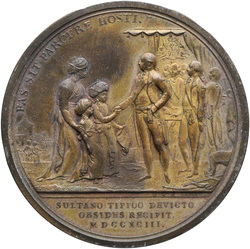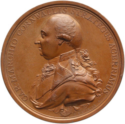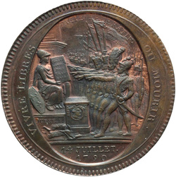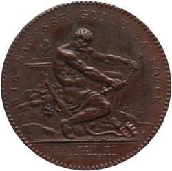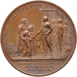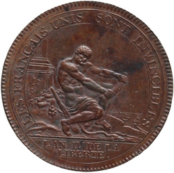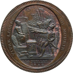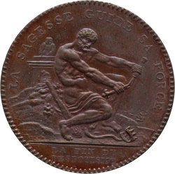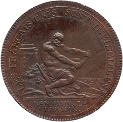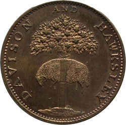 HALFPENNY . / 1792, Female personification of Plenty (Ceres), seated on bale, left; holding the cornucopia; behind, masted ship; date in exergue