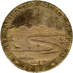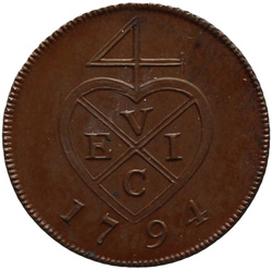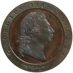 LITTLE TURNSTILE HALFPENNY / IN / 17 96, Two boys at a turnstile. Two lines of inscription directly underneath - the bottom one of which is a date split into two halves by the stile