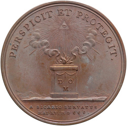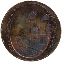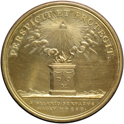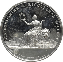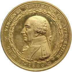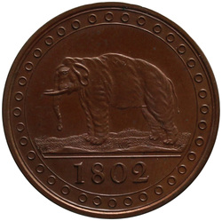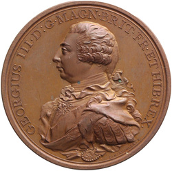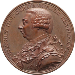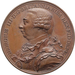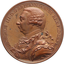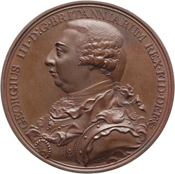 THIS / MEDAL / REPRESENTING SHAKSPEARE BETWEEN / THE DRAMATICK MUSE AND THE GENIUS OF PAINTING / IS RESPECTFULLY PRESENTED TO / THE PERSON / WHOSE NAME IT BEARS / IN GRATEFUL COMMEMORATION OF THE GENEROUS SUPPORT / GIVEN BY THE SUBSCRIBERS / TO THAT GREAT NATIONAL EDITION OF THAT / IMMORTAL POET / BY / I . I. & J. N. BOYDELL. / AND / G. & .W . NICOL. / 1803., inscription around, within rays; a harp with olive branch on scroll