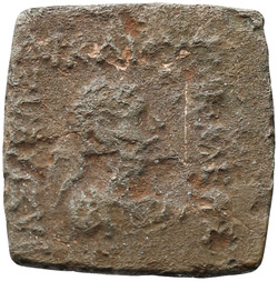 𐨨𐨱𐨪𐨗𐨯 𐨢𐨿𐨪𐨨𐨁𐨐𐨯 𐨱𐨅𐨫𐨁𐨩𐨐𐨿𐨪𐨅𐨩𐨯, Zeus standing left in three-quarter view, holding thunderbolt in right hand, sceptre in left hand