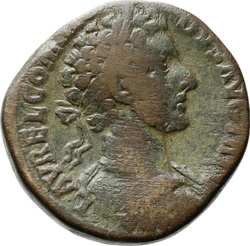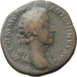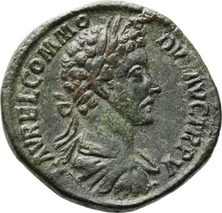 M COMMODVS ANTONINVS AVG, Head of Commodus right, laureate