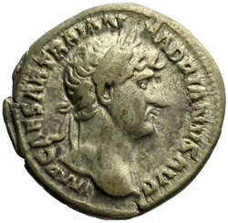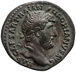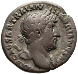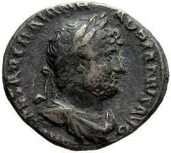 IMP CAESAR TRAIAN HADRIANVS AVG, Bust of Hadrian, laureate, bare chest, traces of drapery on far shoulder, right