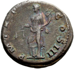 P M TR P COS III, Fortuna, standing left, holding rudder and cornucopia, usually leaning against column behind