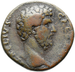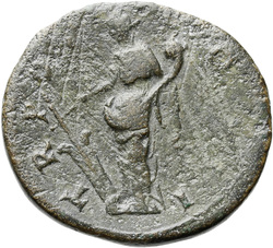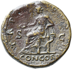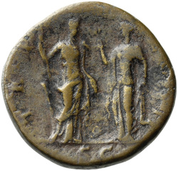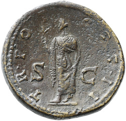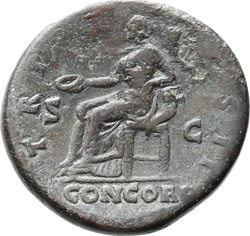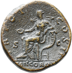 TR P[OT CO]S II // S C (in exergue), Fortuna, draped, standing right, holding rudder on globe in right hand and cornucopiae in left; facing her, Spes, draped, advancing left, holding flower in right hand and raising skirt with left