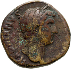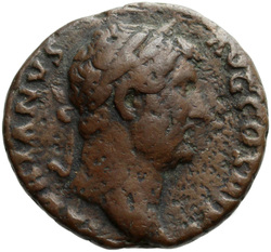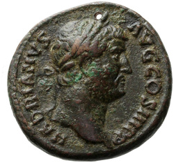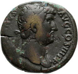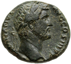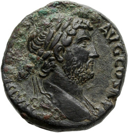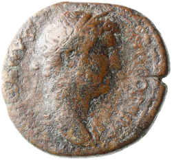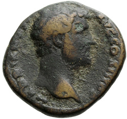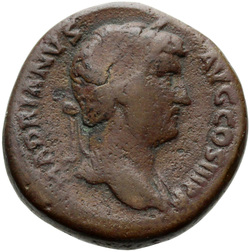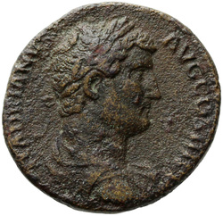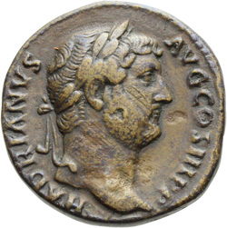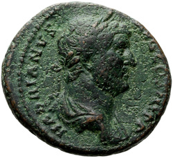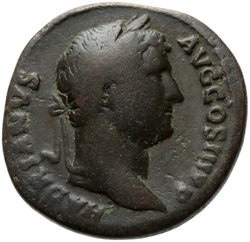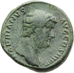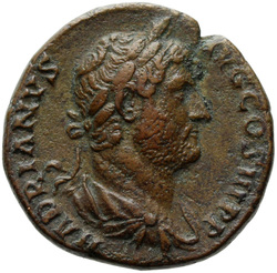 HADRIANVS AVG COS III P P, Bust of Hadrian, laureate, draped and cuirassed, right, viewed from rear or side