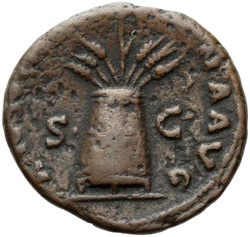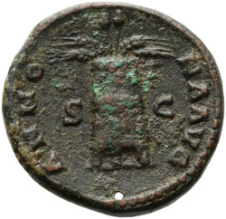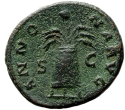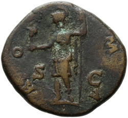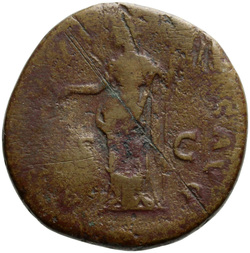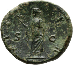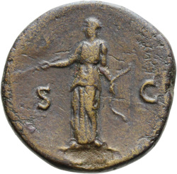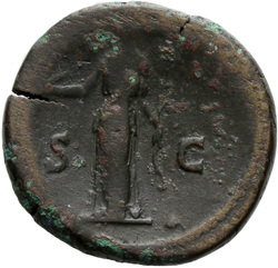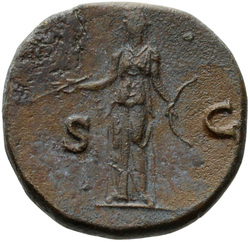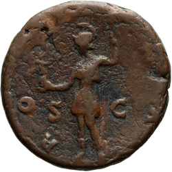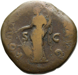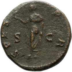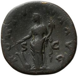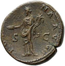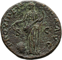 PROVIDENTIA AVG // S C (in field), Providentia standing left, usually leaning against column, pointing to globe with hand or wand and holding sceptre; usually at feet, globe