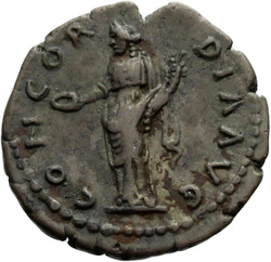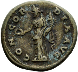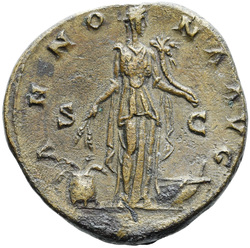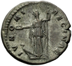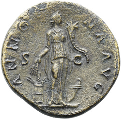 IVNONI REGINAE, Juno, veiled, draped, standing left, holding patera in extended right hand and vertival sceptre in left; at her feet left, peacock standing, left