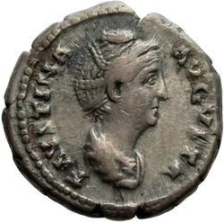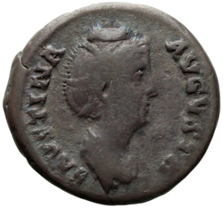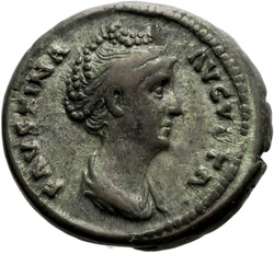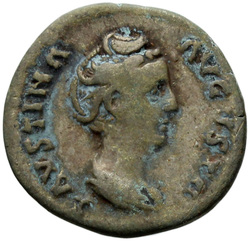 FAVSTINA AVGVSTA, Bust of Faustina the Elder, draped, right, hair elaborately waved in several loops round head and drawn up and coiled on top