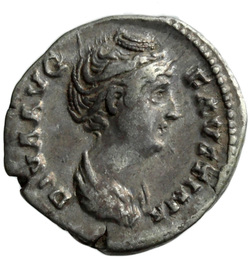 DIVA AVG FAVSTINA, Bust of Faustina the Elder, draped, right, hair elaborately waved in several loops round head and drawn up and coiled on top