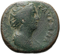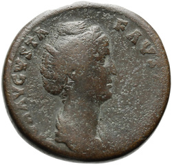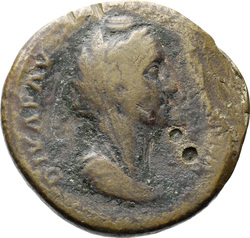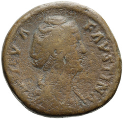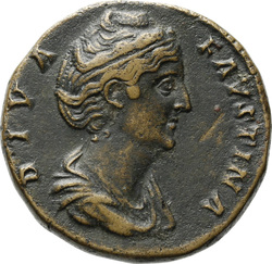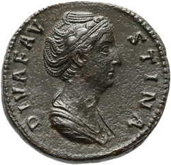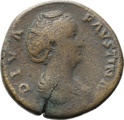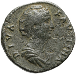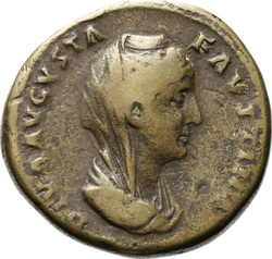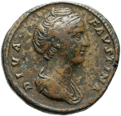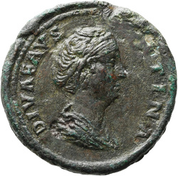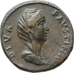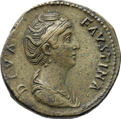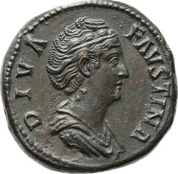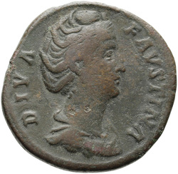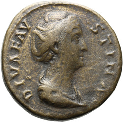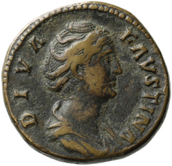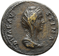 DIVA FAVSTINA, Bust of Faustina the Elder, draped, right, hair elaborately waved and coiled in bands across head and drawn up at back and piled in a round coil on top