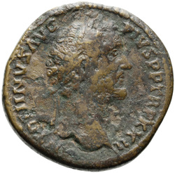 A[NTONINVS AVG] PIVS P P IMP II, Head of Antoninus Pius, laureate, right