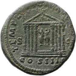 VOTA SOL DECENN II COS IIII, Antoninus Pius, veiled, togate. Standing left, sacrificing out of patera in right hand over tripod-altar left, and holding roll in left hand at side: beside altar, a prostrate bull left
