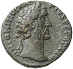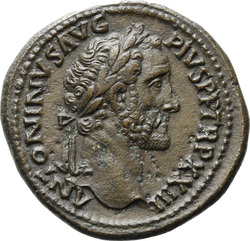 ANTONINVS AVG PIVS P P TR P XXIII, Head of Antoninus Pius, laureate, right