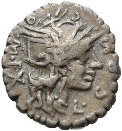 [T]R [P IIII IMP II COS II] S C [R]EX ARM[EN DAT], Lucius Verus, in military dress, seated left on curule chair, set on low platform; behind him on platform, two soldiers; before him on platform, officer standing right, holding rod; on ground before platform, King Sohaemus, raising right hand to his head
