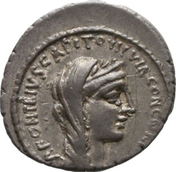 FAVSTINA AVGVSTA, Bust of Faustina the Younger, draped, diademed, hair elaborately waved in nearly vertical lines and fastened in a low chignon at back of head round head, down cheek, curls, right