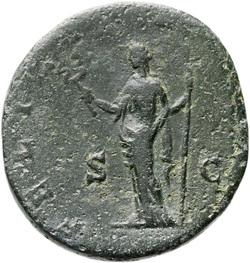 MINER PACIF COS II S C, Minerva, helmeted, draped, standing left, holding olive-branch in right hand and shield set on ground in left hand; spear rests against left arm