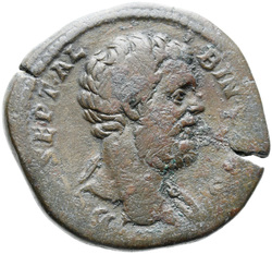 D CLOD SEPT ALBIN CAES, Bust of Clodius Albinus, bare-headed, draped on left shoulder, right