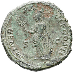 MINER PACIF COS II S C, Minerva, helmeted, draped, standing left, holding olive-branch in right hand and shield set on ground in left hand; spear rests against left arm