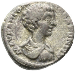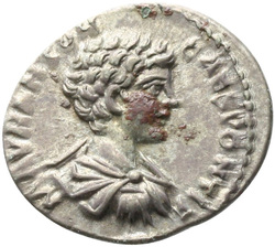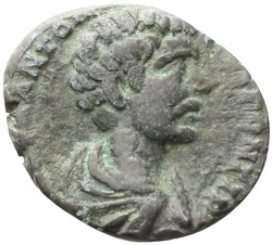 M AVR ANTON [C]AES PONTIF, Bust of Caracalla, bare-headed, draped, cuirassed, right