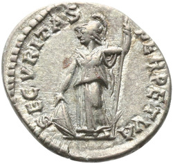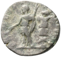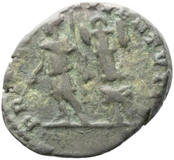 PRINCIP[I IVVENT]VTIS, Caracalla, in military attire, standing left, holding baton in right hand and spear in left hand; to right, trophy