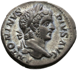 ANTONINVS PIVS AVG, Head of Caracalla, laureate, right