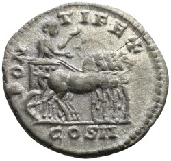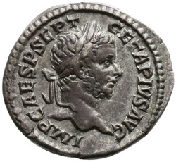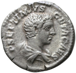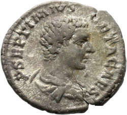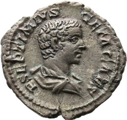 P SEPTIMIVS GETA CAES, Bust of Geta, bare-headed, draped, cuirassed, right, viewed from front