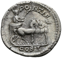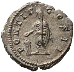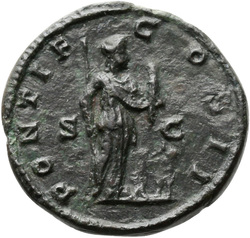 PONTIF COS II S C, Minerva, helmeted, draped, seated left, holding owl and resting left elbow on shield; spear (sceptre?) under arm