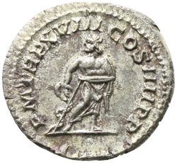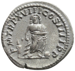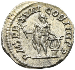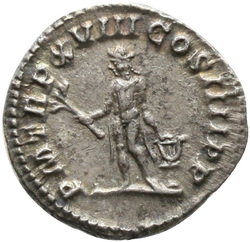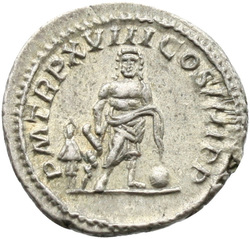 P M TR P XVIII COS IIII P P, Jupiter, nude to waist, seated left, holding Victory in extended right hand and sceptre in left hand; at feet, eagle