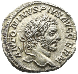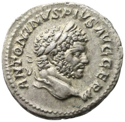ANTONINVS PIVS AVG GERM, Bust of Caracalla, radiate, draped, cuirassed, right, viewed from front