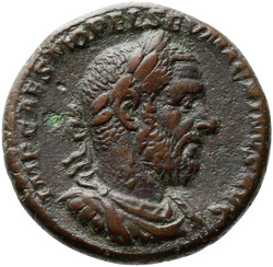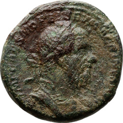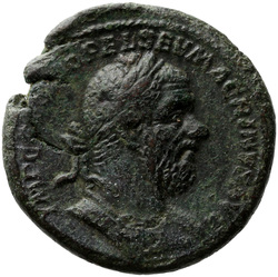 IMP CAES M AVR ANTONINVS AVG, Bust of Elagabalus, laureate, draped, cuirassed, right