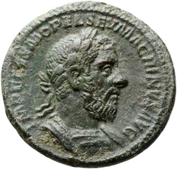 IMP ANTONINVS PIVS AVG, Bust of Elagabalus, laureate, draped, right