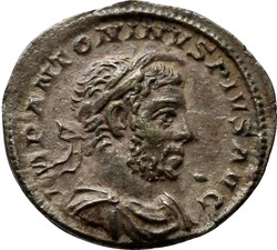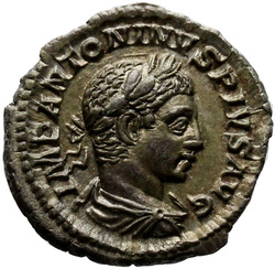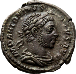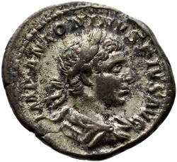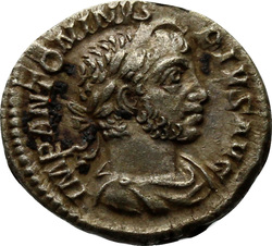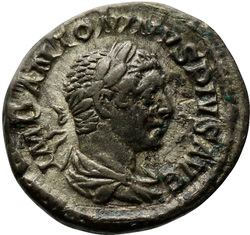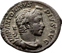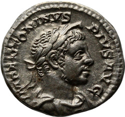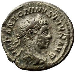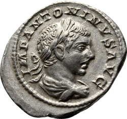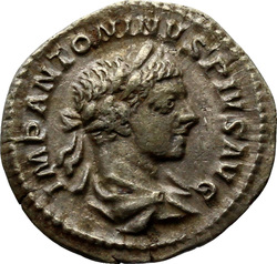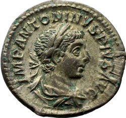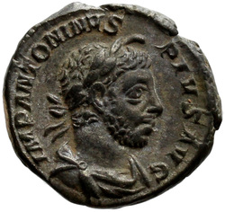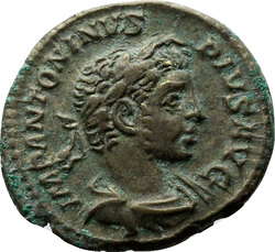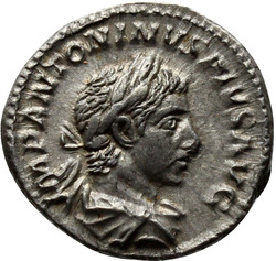 IMP ANTONINVS PIVS AVG, Bust of Elagabalus, horned, laureate, draped, right