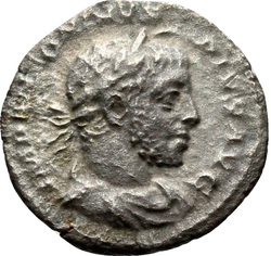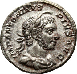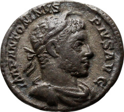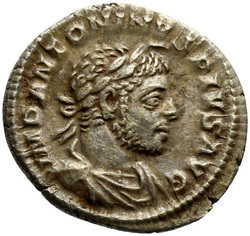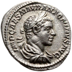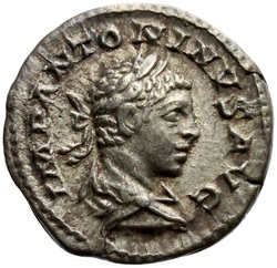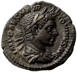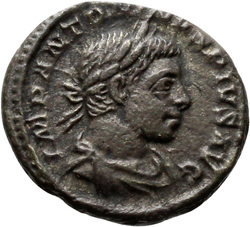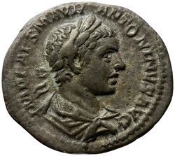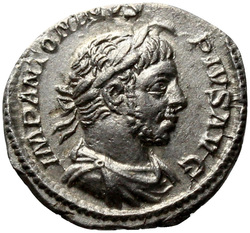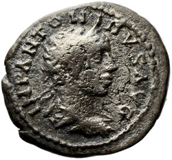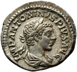 IMP ANTONINVS PIVS AVG, Bust of Elagabalus, horned, laureate, draped, right