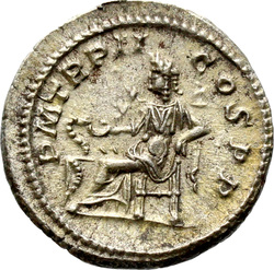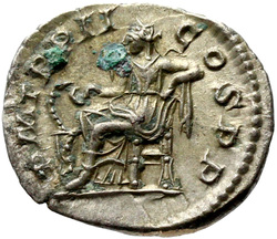 PONTIF MAX TR P II COS P P S C, View of the Colosseum showing front, interior and back wall, with two combatants in arena; to left, Severus Alexander, sacrificing out of patera in right hand over altar, behind him, standing figure; another standing figure behind; to right, templein two storeysin arena, two combatants