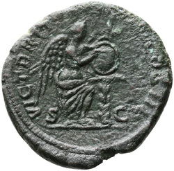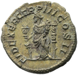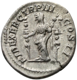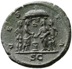 IVNO S C, Juno, veiled, draped, standing left, holding patera in extended right hand and sceptre in left hand; at feet, left, peacock