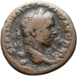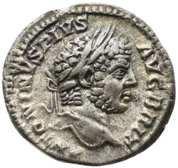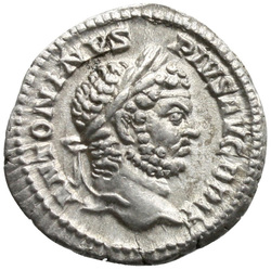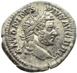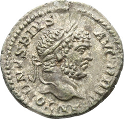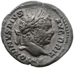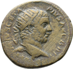 P SEPTIMIVS GETA PIVS AVG BRIT, Bust of Geta, laureate, draped on left shoulder, right