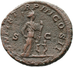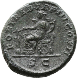 FORT RED TR P III COS II S C, Fortuna, draped, seated left, holding rudder set on globe in right hand and cornucopiae in left hand; below seat, wheel