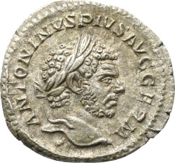 ANTONINVS PIVS AVG GERM, Bust of Caracalla, radiate, draped, right, viewed from rear