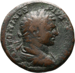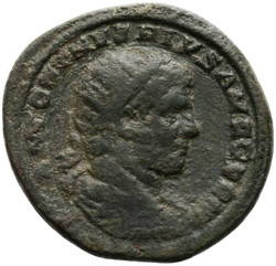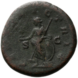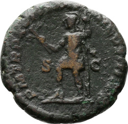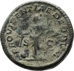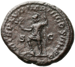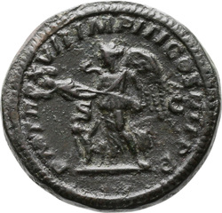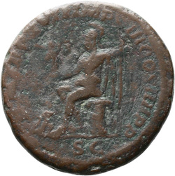 [P M] TR P XVII IMP III COS IIII P P S C, Roma, helmeted, draped, seated left on cuirass and shields, holding Victory in extended right hand and spear in left hand; under feet, helmet; in front, kneeling German