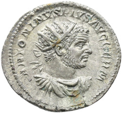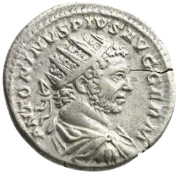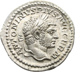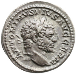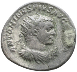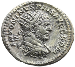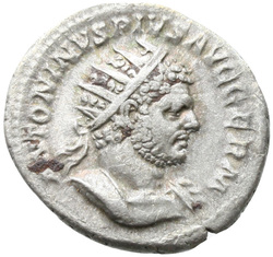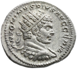 ANTONINVS PIVS AVG GERM, Bust of Caracalla, radiate, draped, cuirassed, right, viewed from front
