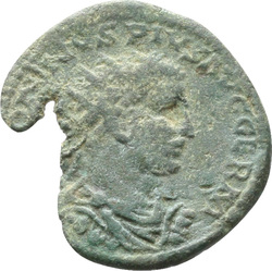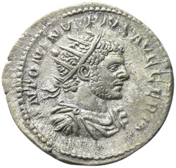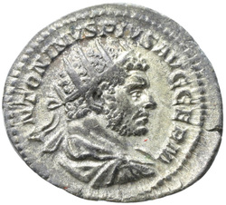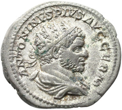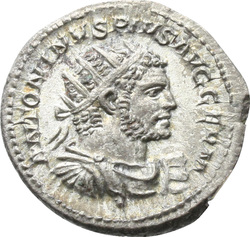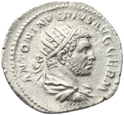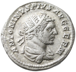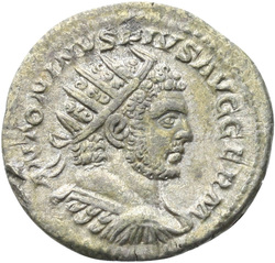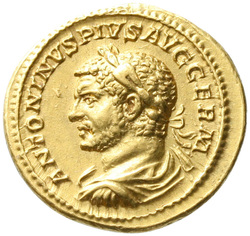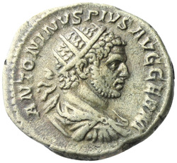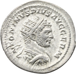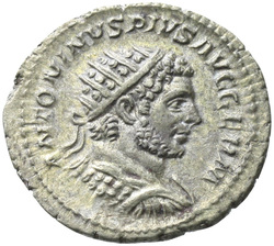 ANTONINVS PIVS AVG GERM, Bust of Caracalla, laureate, draped, cuirassed, right, viewed from rear