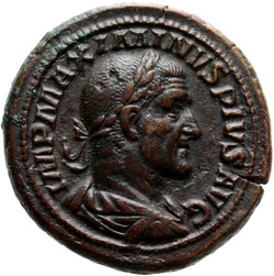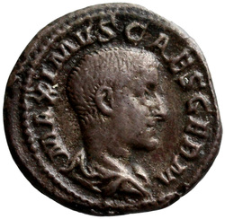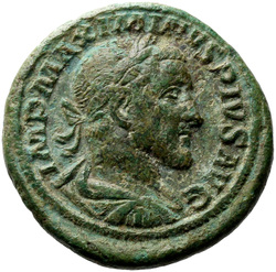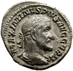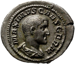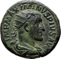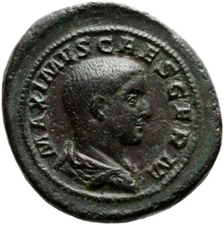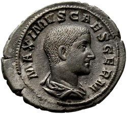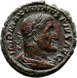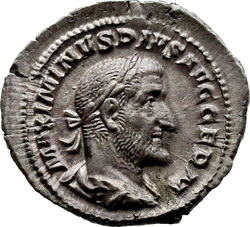 IMP MAXIMINVS PIVS AVG, Bust of Maximinus I, laureate, draped, cuirassed, right
